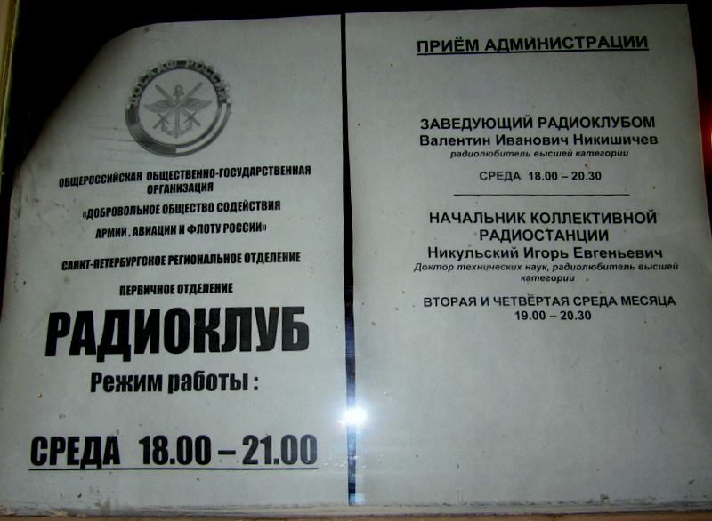Спасибо за интересный рассказ. Забыли только написать, что ДОСААФ-овский клуб обрёл своё пристанище в здании автошколы ДОСААФ на ул. Афонской. Собирается там народ по средам, с 18 часов. Однако в последнее время активность этого клуба стала непостоянной в связи с тем, что новое руководство автошколы не сильно жалует радиолюбителей, которые занимают помещения, кои можно выгодно сдавать в аренду. В клубе том есть действующая коллективная станция RZ1AWA, с рабочей аппаратурой и антеннами. Руководит этим всем до сих пор Валентин Иванович Никишичев (RW1DN).