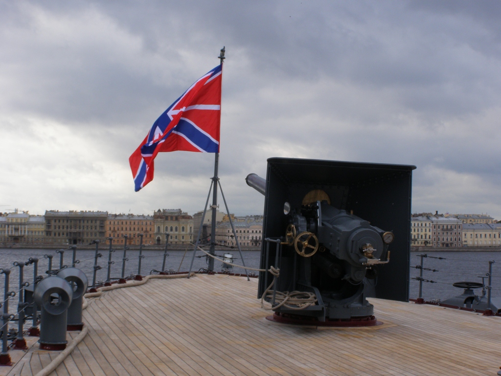 Встретили "Аврору" в составе: RQ1AP RA1AIE + YL UA1CFX + YL В эфире RF1A, оператор RQ1AP  RA1AIE, CQ RF1A 20m  UA1CFX слушает лекцию об истории "Авроры"  Точка обзора акватории была просто шикарная и, можно сказать, эксклюзивная, hi-hi  На набережных было не протолкнуться, а тем, кто вышел смотреть на проход "Авроры" на речных трамвайчиках, катерах и прочих плавсредствах, не повезло совсем - на время прохода крейсера водные спасатели и речная полиция загнали всех посторонних куда подальше. Появляется "Аврора":  RA1AIE/YL ловит ракурс  Крейсер проходит дебаркадер...  ...а UA1CFX бдит.  Тем временем "Аврора" подходит к Благовещенскому мосту.  Что касается КВ, то звали и на 20, и на 40, но народ предпочитал обсуждать колорадского жука, а на CQ RF1A отвечали вяло. Набралось всего несколько десятков связей. Огромное спасибо Сергею RQ1AP за гостеприимство!
