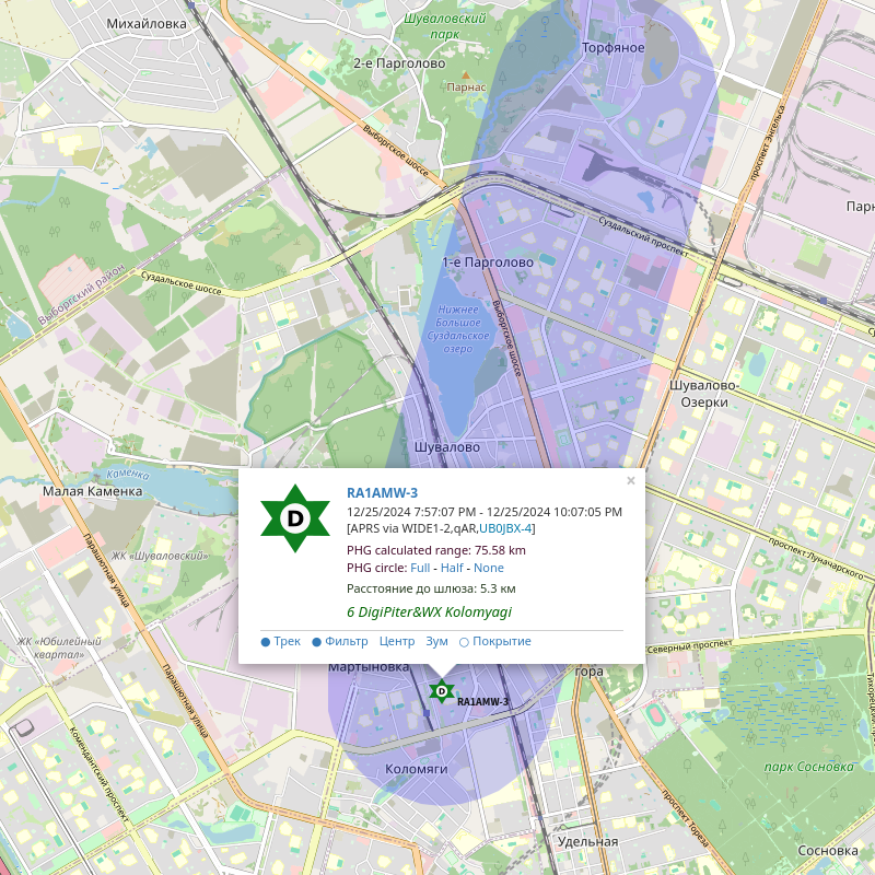 Плюс ещё раз попытался сделать IGate на 144.800 — безрезультатно. Сейчас у меня есть IGate на 432.500 из Яги + SDR. Сегодня ещё раз пытался через аудиокарту подключать все Баофенги и все антенны, что у меня есть, но ничего не вышло. Без нормальной антенны на Парнасе принять не получается. Точнее сигнал-то есть, но всё в шумах и ничего не декодируется.