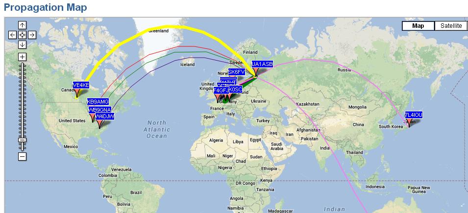 - DominoEX11 tracker on HF 1Watt output QRG 21.401 MHz USB (Dial freq 21.400 MHz) transmission every minute (disabled during WSPR transmission)