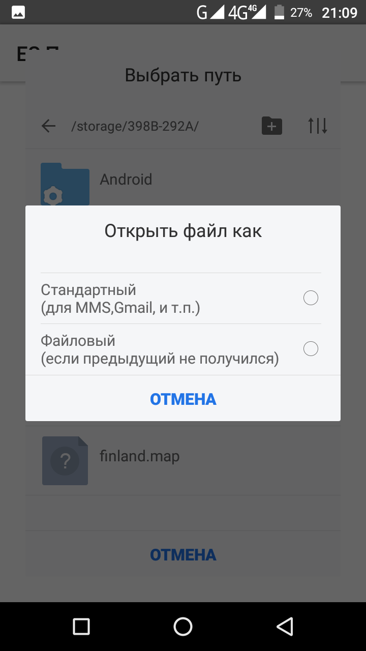 1) проверьте, что размер загруженного файла карты Финляндии 308.97 Мб. 2) установите ES Проводник (нужен для выбора файла) 3) в Настройках APRSdroid в пункте "Имя файла карты", где указывается путь к карте, нажмите на путь и в левой части окна выберите ES Проводник. Вложение:
