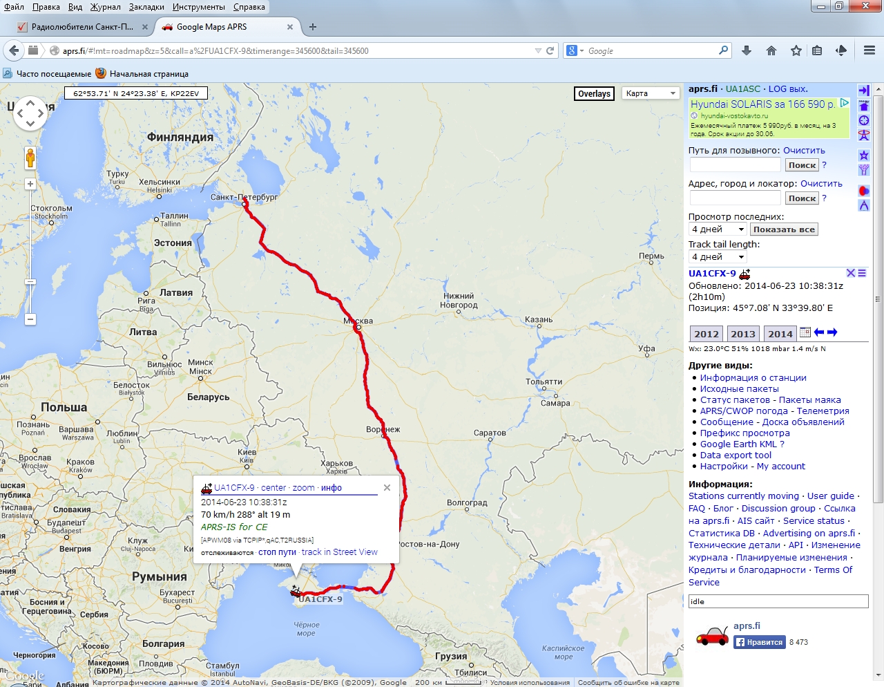 Заголовок сообщения: Re: Вижу сейчас в APRS. Добавлено: Вс 22 июн 2014 08:14 |