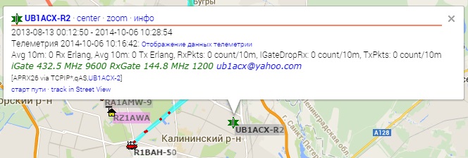 RD1AS писал(а): SLYFOX писал(а): RD1AS писал(а): ...благодаря гейту UA1CDG-10 пакеты видны в интернете. Не гейт, конечно, так баловство с GP-68.... Но рад, что ожила система: RA1AMO-9 в движении виден сейчас. Может из баловство сделать полноценную. Если конечно есть желание и возможности с местом? Вернулся из короткой командировки. UA1CDG-10 включен в такой-же конфигурации, без изменений. Но как RX- гейт работает.
