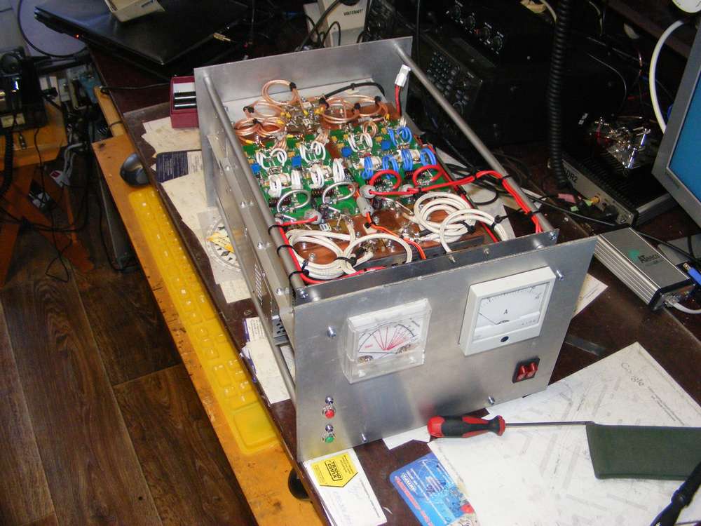 To ew3abc… Сделать усилитель меня подвиг Александр RA1AW, за что ему большое спасибо. Устал таскать на дачу блок питания к ГУ-74Б… Купил корпус от компьютера, заказал на EBAY - 4 паллеты, 1,5 квт блок питания. Написал письмо F1TE – получил от него плату защиты и контроля температуры. Аттенюаторы и балластные резисторы заказывал на EBAY. В итоге получил усилитель, хотя не то что я хотел. Я хотел чтобы раскачка была до 8 вт, чтобы работать на SUNSDR2, а тут 35-40 вт (3дб аттенюатор), и потребляет 36А при 51 в. Уже родилась идея вместо 4 паллет поставить один транзистор – там 26А при 50 в и раскачка 3-4 вт… Скажите как ВАШЕ имя?
