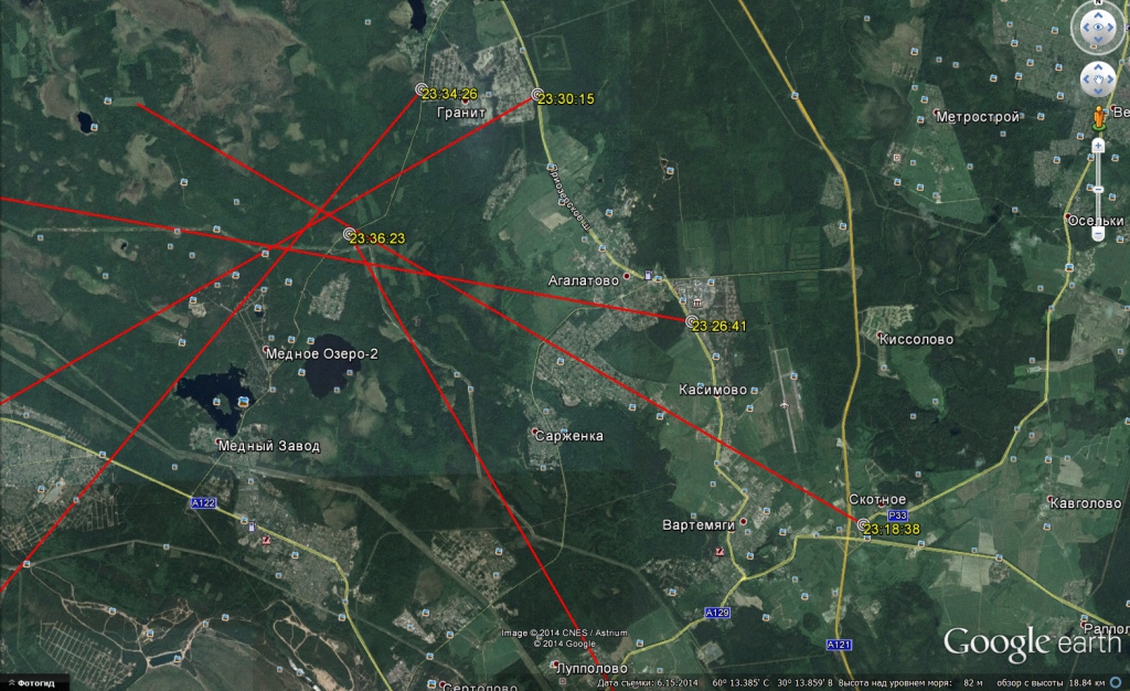 Взяв второй пеленг Поняли, что надо уходить на запад. Пришлось возвращаться к развязке "Скотное".