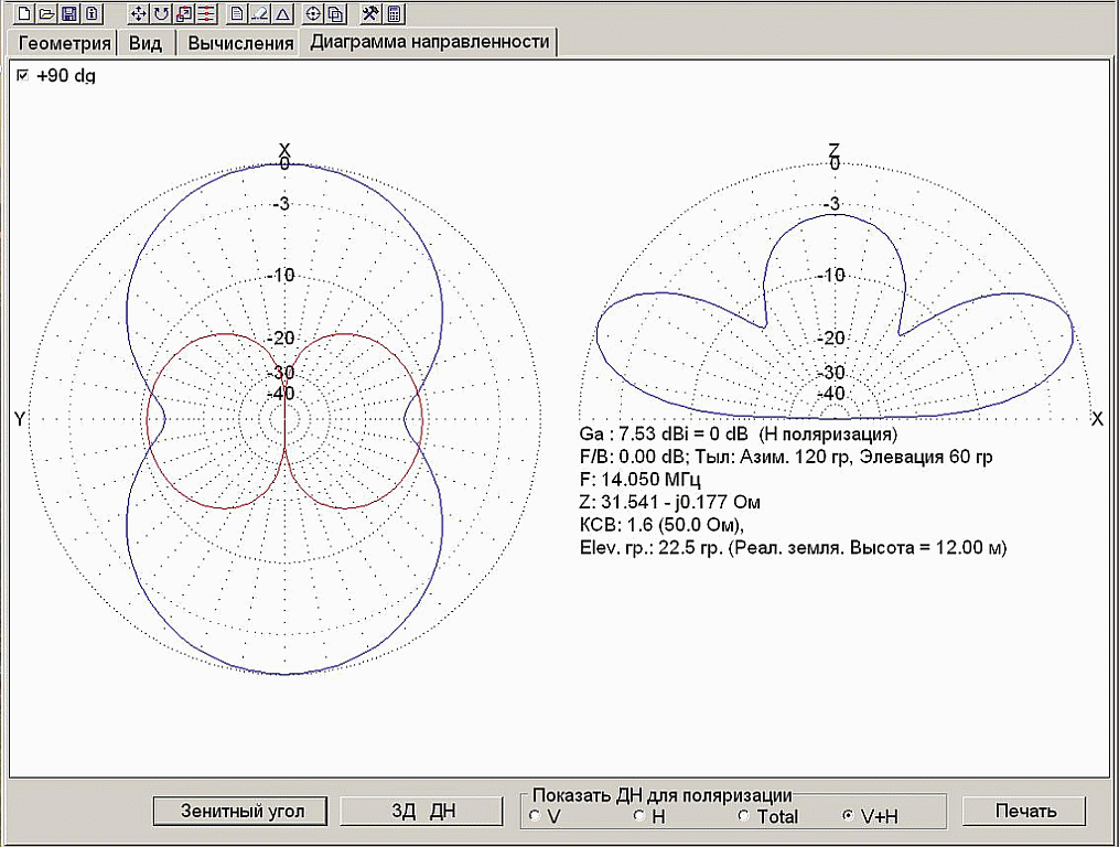 RM1C писал(а): А Вы можете показать диаграмму, если удочка расположена перпендикулярно балкону, т.е. параллельно земле? 2el_gor_xx это как раз расположение диполя из 2-х удочек горизонтально, а для одной все намного хуже (что горизонтально, что вертикально)  влияние балкона и стены позади балкона не учитывалось, также как и подключение СУ