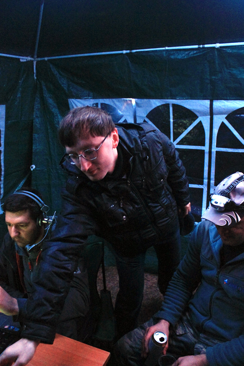 Комментарий к файлу: Никита RA1AO. Нет, он не спит и глаза у него не закрыты, он просто смотрит на клавиатуру ноутбука и внимательно слушает своего корреспондента.