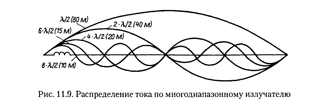 UP! Наткнулся на интересный вариант end-fed http://myantennas.com/wp/product/efhw-8010p/. Длина 39 метров, резонансы заявлены на всех бэндах от 80 до 10 (включая 30м). Индуктивность - вибратором на отрезке ПВХ трубы (насчитал 7 витков). И як же оно робит  ?! Я вижу пока только одно предположение: излучатель 1/2Л от самого нижнего диапазона и далее резонансы 1Л, 1.5Л...etc. Хотя выше я описывал эксперимент с проводом ~41 метр и на 7 МГц не получалось (может из-за малой высоты подвеса), а выше не мерял. Возможно более хитрый трансформатор используется...кто что скажет?! З. Ы. Ещё у них есть вариант от 160 до 40 м, включая 60 м диапазон, с длиной излучателя около 78 метров.