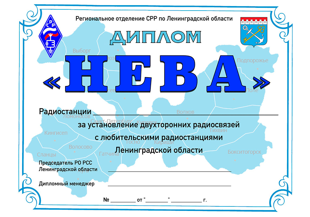 RX1AE писал(а): Если речь идет о возрождении диплома, то предлагаемый дизайн - самое то! (с учетом корректировки названий организаций и должностей ответственных лиц). Это конечно ИМХО! Предложения включить виды городов области - достойное предложение для разработки дизайна нового диплома. С видами городов ЛО - аляповато получится. Лучше и проще гербы районных центров по периметру.
