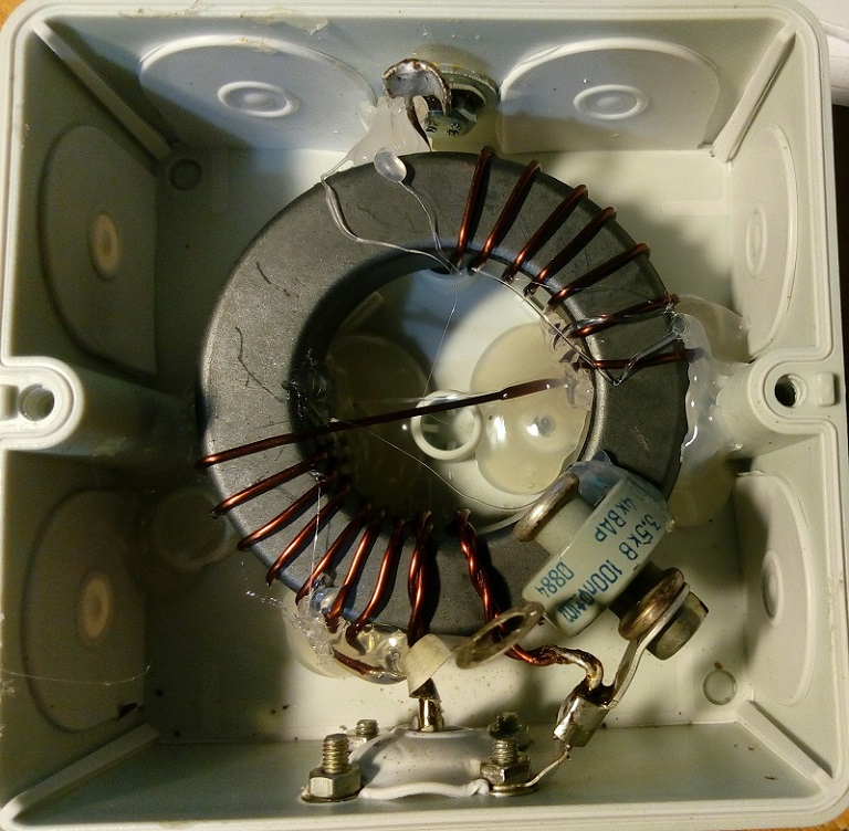 Оригинальный дизайн имеет соотношение 27/3 оборота (1: 81) на небольшом 43 материала тороида, но больший тороид имеет больше провода, таким образом, NR витков должна была быть уменьшена для max.efficiency на 10м. Катушка теперь имеет отношение 16/2 (1: 64) для макс. Производительность 2 поворачивается на землю должны быть скручены. 100-150pF конденсатор дает лучший матч на 10m.and обе обмотки начать на первом стороне катушки .Don't попытаться стек тороидов для большей мощности для это увеличит общую индуктивность. Это делает невозможным, чтобы настроить высокие полосы. Наилучшие результаты получены с небольшой тороид ..... 3 полоса антенна имеет длину Aprox. 10.1m. а затем катушки около 34 мкГн (90 поворачивает 1мм эмаль провод на 19мм ПВХ трубы) и торцевой частью около 1,85, предлагая вам идеальную вертикальную или горизонтальную антенну для полевых работ на 40 -20 и 10 м. Существует также версия 5 полоса с Aprox. 20.35m проволоки с последующим 110 - 120uH катушки (около 260 поворачивается 1 мм CUL на 19мм трубы ПВХ) и А APROX. 2.39m. концевая деталь. Используйте более длинный провод для тестирования для окружающих предметов могут взаимодействовать.