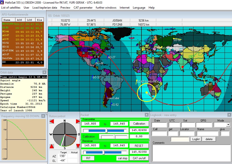 RA1AHQ писал(а): Юрий, спасибо! А основная программа какая?  HalloSat, UISS и soundmodem, иногда Ui-View32 использую. RA1AHQ писал(а): Сейчас подгрузил TLE . У меня аккаунт на space track, там по отзывам точнее всё это дело. HalloSat автоматом кепсы свежие подтягивает и доплер учитывает в трекере. Весьма удобно IC-910H управляется по СAT этой прогой. Частоту автоматом подстраивает под доплер и другие плюшки радуют.