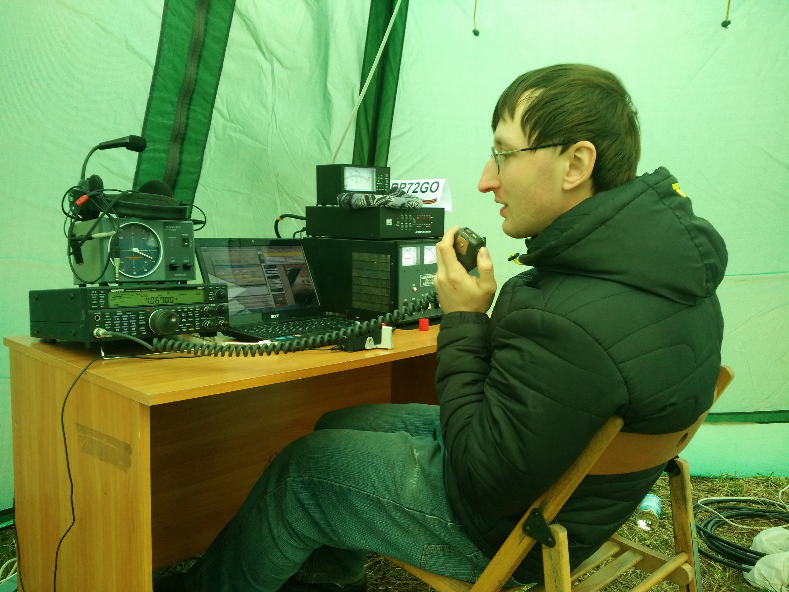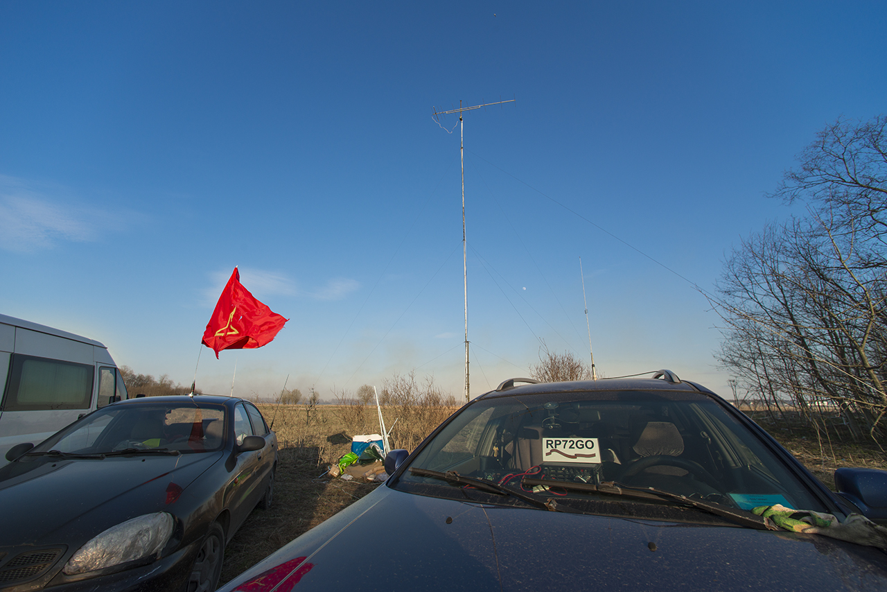 Был 2 дня с отъездом в город на ночевку. Понравилось, что всё время светило солнце, и сухой грунт. С другой стороны, ночью был минус, днем пронизывающий ветер со снежинками. Но по сравнению с Лугой, условия были гораздо лучше, т.к. все время можно было находиться на свежем воздуже. Почти провел на новую антенну одну связь телеграфом, с YO4VM, Костя. Но 18 МГц было нестабильное прохождение (21 МГц открылся позднее, только телеграф). Команда RP72GO работала на 80-40-30-20, CW и телефоном и провела очень много связей.