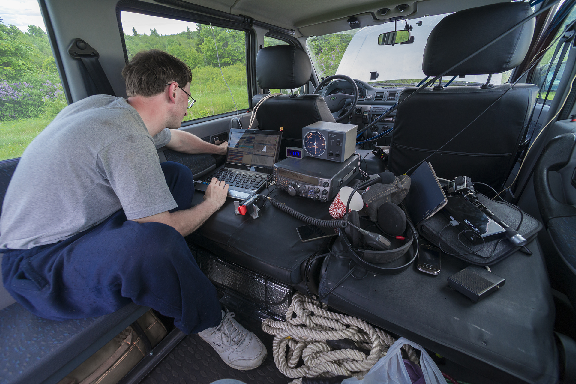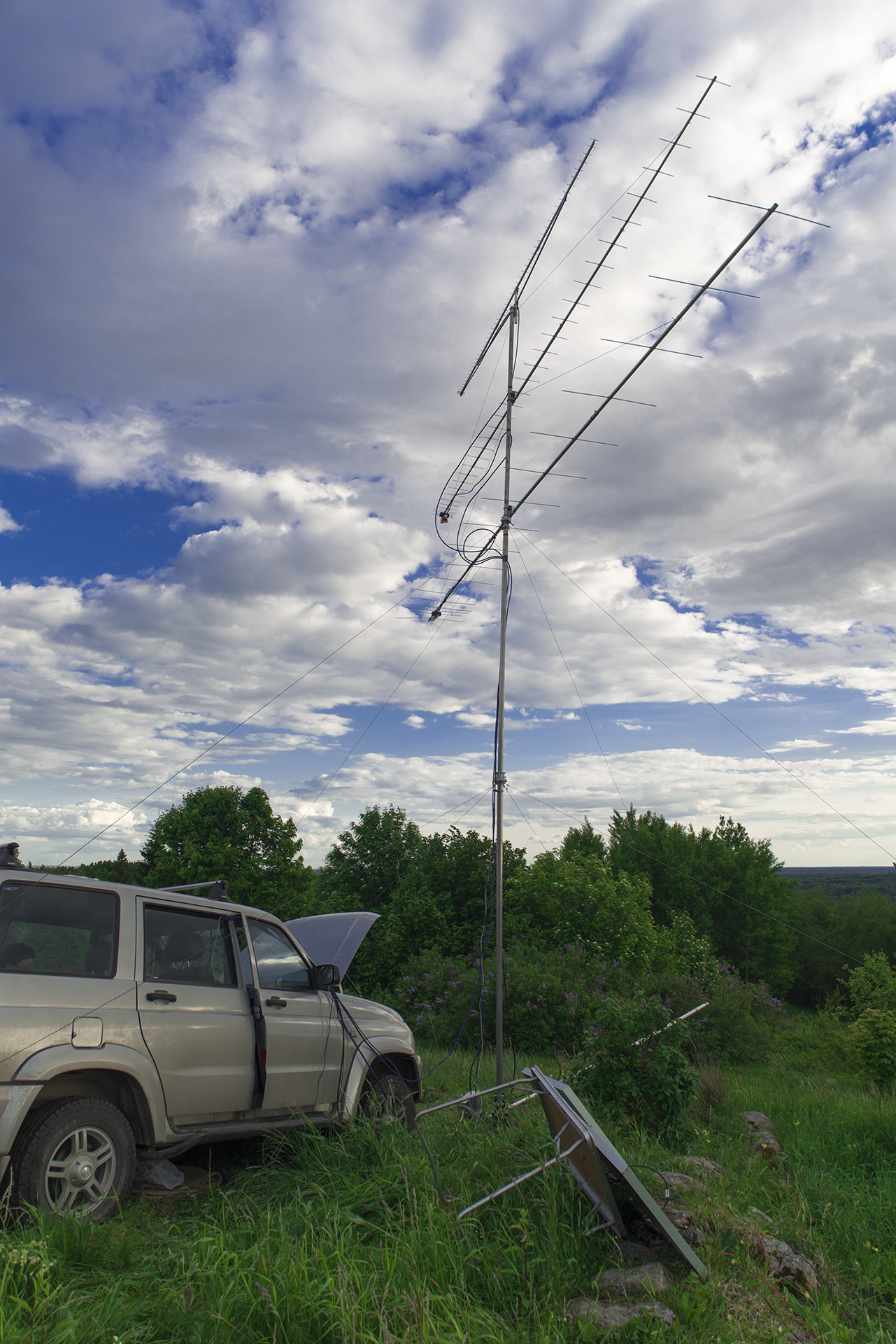 Всего связей на всех диапазонах - 43 (точно Никита подскажет, у него лог на ноутбуке остался). Самая дальняя - SK0EN (707 км) на трёх диапазонах телеграфом. Вначале теста прохождение по всем диапазонам было паршивое, но уже через час оно начало постепенно улучшаться и под конец было вполне приемлемым. Из особенностей контеста в этом году хотелось бы отметить то, что большинство связей проводилось телеграфом, вероятно плохое прохождение подтолкнуло большинство участников к более пробивному виду модуляции. В нашем случае всё, как обычно: комары, слепни и палящее солнце. Правда дождика было только два и те очень мелкие, то есть в этом году с погодой очень повезло.  Снимали видео, но мало, поскольку основной упор был сделан на подготовку к контесту и работе в нём. В принципе, почему в прошлом году получилось много видео потому, что было много дождей, которые мы вынуждены были пережидать. Поэтому в этом году двухчасового кино не будет.  Ждём от других фото, впечатленияй от контеста.