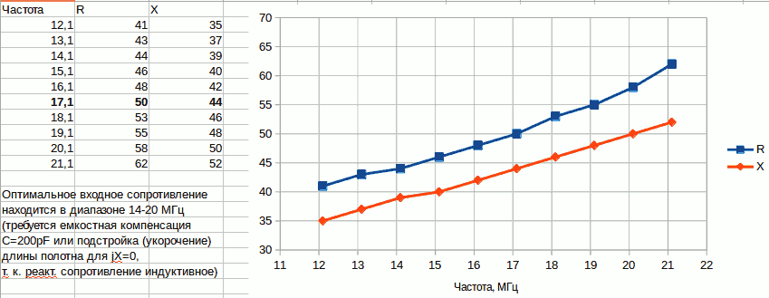 Комментарий к файлу: R + jX для ШПТ 1:1 на основе ферритовой трубки от монитора
