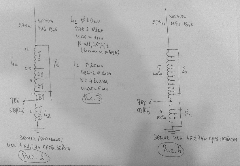R1BBE писал(а): Подскажите программу или сайт, где можно расчитать удлиняющую катушку для GP. У меня есть MFJ-1966, фактически хлыст линной 2.7 метра, хочу попробовать его на 12, 15 и 17 метровые диапазоны с удлиняющей катушкой, да не хватает знаний. Штырь MFJ-1966 при длине 2.74 м на ВЧ диапазонах имеет комплексное сопротивление, поэтому для того, что бы согласовать его на этих диапазонах можно применить блок согласования, который представлен на рисунках. Там же указаны величины сопротивлений в зависимости от диапазона. На рис.1 нарисованы согласующие звенья для каждого диапазона по отдельности, а на рис.2 схема совмещенного блока согласования для упрощения конструкции. На рис.3 параметры катушек. На рис.4 расширенная схема, если антенна будет эксплуатироваться в мобильном режиме. Подробней хотелось остановиться на «ЗЕМЛЕ». Все расчеты проводились для антенна стоящей прямо на земле, именно на земле, т.е. небольшой штырек воткнут в землю и к нему уже подключается оплетка кабеля. Если антенна будет устанавливаться на крыше дома, то необходимо 4-е противовеса по 2.74 метра. Особо остановлюсь про установку антенны на крышу автомобиля. Установка КВ антенны на крышу авто это зло, которое еще нужно поискать. Если антенна используется в движении, тогда да, деваться не куда. Но если антенна используется на стоянках и остановках, то лучше антенну размещать прямо на земле. Автомобиль имеет резиновые покрышки и получается изолированным от земли, а это эквивалентно конденсатору. И что получается при установке магнитного крепления, которое связано с крышей авто через конструктивную емкость (при диаметре 145 мм емкость равна 415 пф), да еще и авто это конденсатор, то получаем последовательное соединение емкостей, что уменьшает связь с землей и увеличивает потери. Дальше больше антенна получается сильно расстроенной, площади крыши не хватает для работы в качестве противовеса и т.д. Все штыри проектируются при установке на землю, имеется в виду укороченные штыри типа MFJ и т.п. Если штырь снять с авто и просто установить на землю получится очень большая разница в работе одной и той же антенны, при естественно ее согласовании.