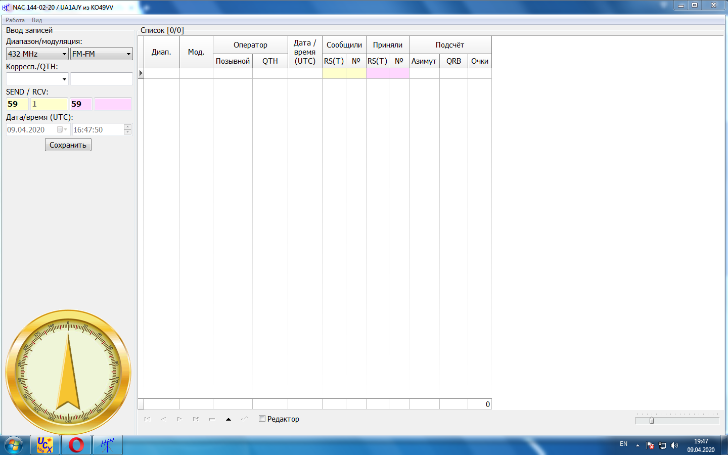 Работал в N1MM. Всё удобно, вводишь команду и вперёд в новый тур. Всё очень понравилось, повторение на следующей неделе будет весьма кстати. В отчете исправил в принятых номерах квадрат Вадима UA1C на правильный, но наверное зря. Связи вылетят. Поэтому чего услышал, то и пиши