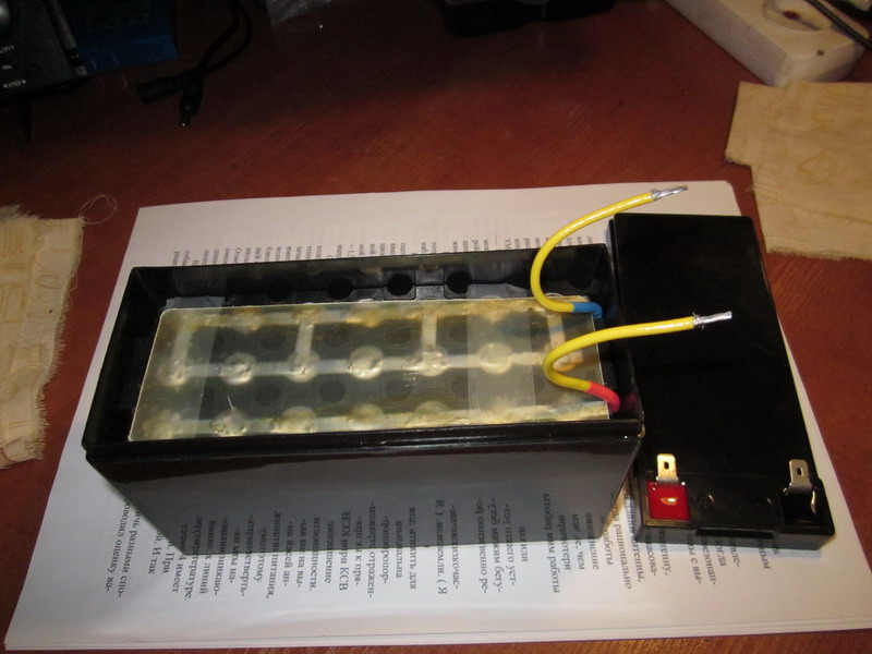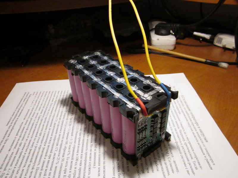 Всё предусмотрено, изделие питается от полимерного АКБ, 14.6 вольт, через очень хитрый разъём.
