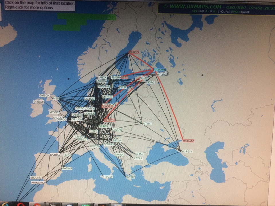 Тоже слушал и вызывал- глухо. Хотя, финнов слышашал где-то на 5-6 балов ниже по частоте. Антенна, конечно, не айс - G5RV, но высоко висит. KO59EU, пр. Славы.
