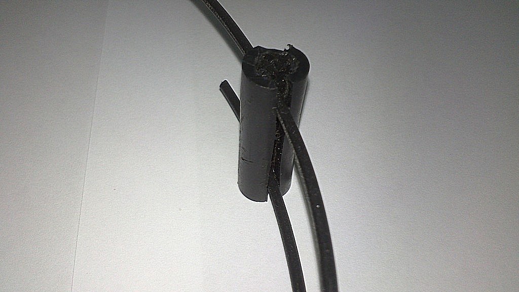 При изготовлении двухпроводного фидера, основной момент это распорки между проводами. Вот предлагаю простой способ изготовления этих самых распорок. Распорки изготавливаются из внешней оболочки коаксиального кабеля. Как известно оболочка коаксиального кабеля очень стойкая к жестким условиям эксплуатации, при этом еще и очень легкая. Желательно брать кабели которые имеют полиэтиленовую оболочку, например старые советские. Кабель нарезается на необходимые куски и с боку вдоль разрезается, далее с противоположной стороны прорези делаются два отверстия, на необходимом расстоянии (расстояние зависит от волнового сопротивления фидера). Отверстия нужно делать шилом и именно шилом, потому что при проколе в этом месте полиэтилен немного растягивается и после вставления провода, со временем обратно стягивается, тем самым жестко сидя на проводе. Для дополнительной жесткости сделана и боковая прорезь, которая нейлоновой стяжкой затягивается и распорка жестко сидит на проводе. На 10 м фидера было затрачено около метра коаксиального кабеля и полтора часа времени, кабель нарезался ножницами по металлу, вдоль разрезался канцелярским ножом с выпуском лезвия на 2-3 мм. На фото процесс крепления и готовый фидер для несимметричного диполя.