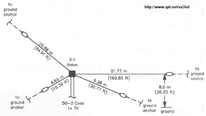 Коллеги, Сотворил WINDOM на 9 диапазонов по нижеприведенной схеме. Очень порадовал результат сразу после подьема на высоту 12 м без настройки. На всех диапазонах КСВ не более 2 и в работе антенна показала очень хорошие результаты даже без тюнера. Кроме 7 мГц где КСВ 3.2 и 1,8 мГц КСВ 4 На 160 м диапазоне ближайшие резонансы оказались 1,5 мГц и 2,3 мГц Пробовал укорачивать плечи 51.77 м и 9.38 м, резонанс меняется крайней незначительно. Подскажите чем настраивать что бы добиться приемлимого КСВ на 160/40 м