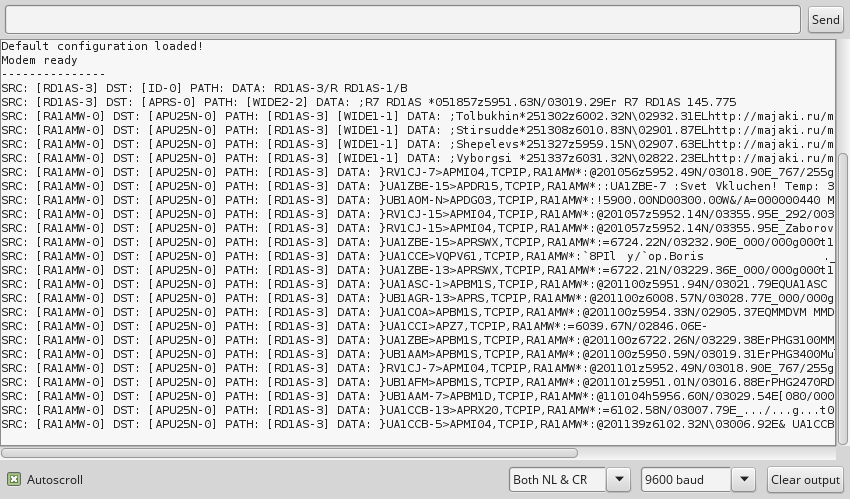 Да. Soundmodem.exe является заменой TNC. Модем должен быть запущен до любых программ, использующих его, т.е. до APRSIS32. Модем работает параллельно с основной программой. --- offtopic Совет: на первое время, чтобы проверить работу декодирования APRS пакетов из эфира можно не запускать APRSIS32, а только смотреть в окне UZ7HO sound-модема, что из эфира принимаются пакеты. (Пакеты можно создать при помощи другой, настроенной APRS станции рядом или с помощью заранее настроенной и рабочей связки APRSdroid + кабель с AliExpress + Baofeng UV-5r, или на частоте ретранслятора 144.800 (где периодически бывают посылки). APRSIS32 служит лишь для нанесения маркера на карту, передачи сообщений. Но весь пакет APRS открыт для наблюдения - в нём содержатся географические координаты, которые передаются по эфиру в явном виде (как текст).