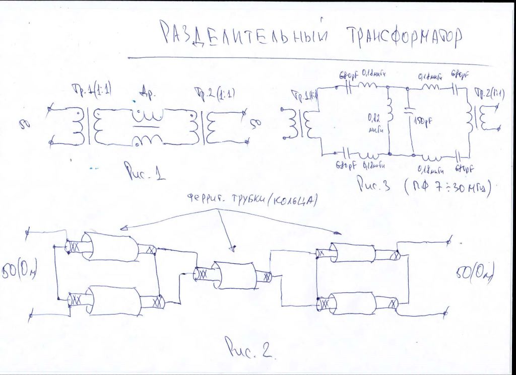 Анатолий Анатольевич! Посоветуйте пожалуйста устройство развязывающего трансформатора 50:50, КСВ в моей антенне не более 1.5, а вот мощность хотелось бы не менее 600Вт, диапазоны от 7 до 28 МГц. Антенна представляет собой траповый GP с заземленной на крышу из цинковки оплеткой кабеля. Кабель подходит к антенне через несколько ферритовых трубок из 10...20 штук колец 20*12*6 2000НМ1 каждая. Есть ли надежда, что такой трансформатор даст эффект уменьшения шума на приеме?