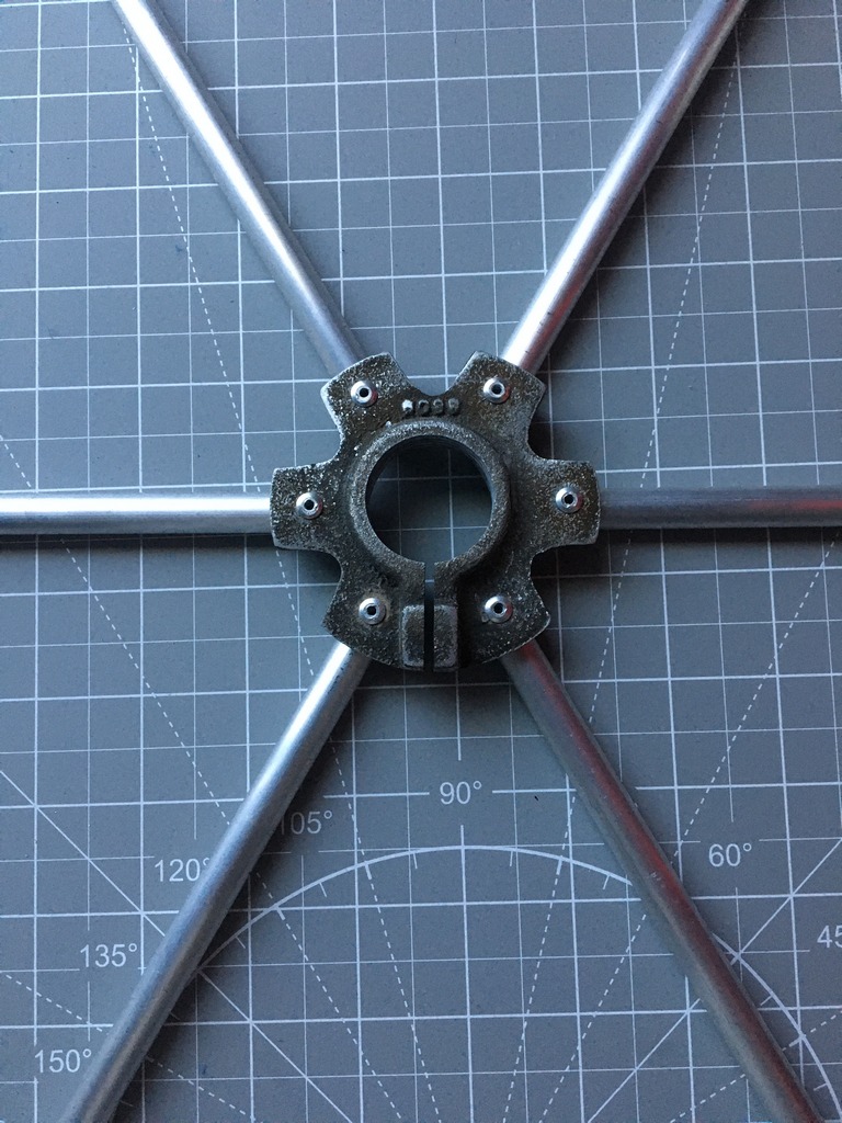 У антенны BTV-4(5), очень часто обламываются элементы емкостной нагрузки. Происходит это из-за того, что в трубках просверлено сквозное отверстие под винт, а для удобства крепления в одной стенке, отверстие рассверлено до диаметра шляпки винта, это все уменьшает тело трубки и остаются небольшие ее части для жесткости, но этого оказывается мало и элементы в этих местах ломаются. Предлагаю крепить емкостные элементы вытяжными заклепками, это значительно увеличивает прочность крепления. На фото вариант крепления.