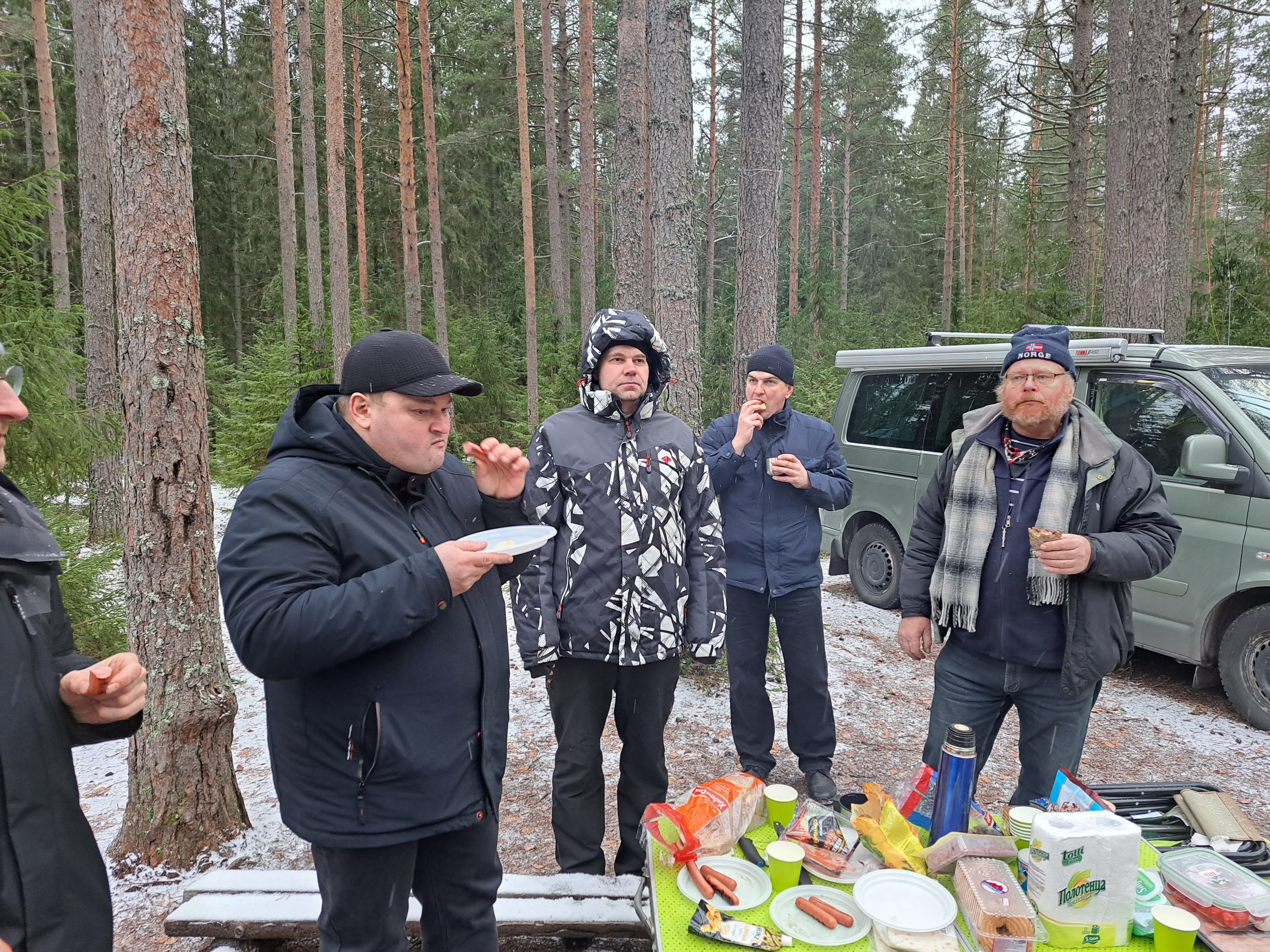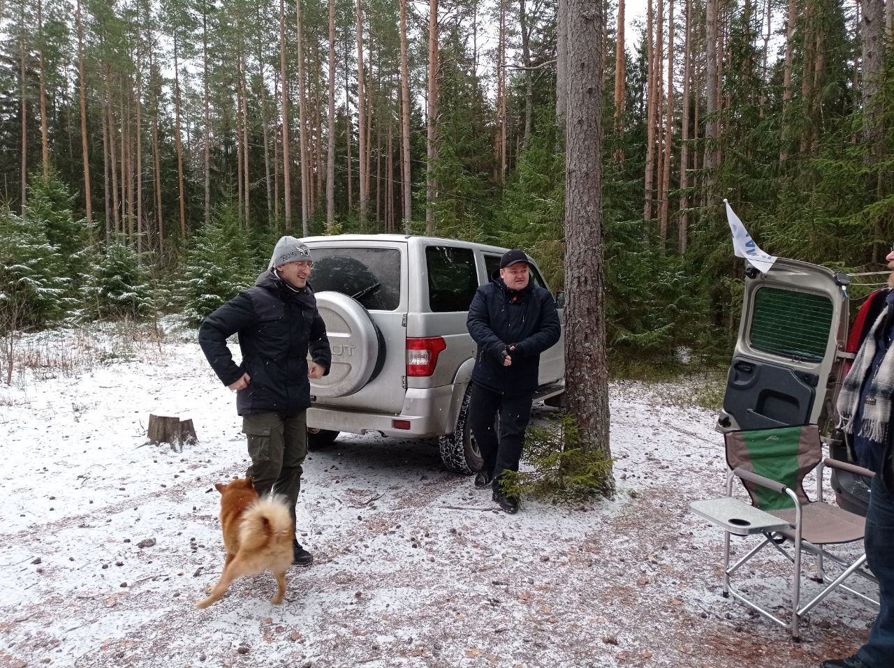 Всем спасибо за охоту и отдельно "лисе" за её организацию! Как всегда было интересно. Мы, в команде с Никитой RA1AO, стартовые пеленги, если можно так назвать показания S-метра трансивера в машине, на выезде из Агалатово в сторону Елизаветинки. Это было около 17 км от позиции "лисы". Сигнал был слабый. Решили ехать в сторону Медного озера, чтобы оттуда получить первые нормальные пеленги, ну и во время движения, по уровню сигнала, ориентироваться в правильности направления движения. По мере приближения к первой точке пеленга, на берегу Медного озера, мы поняли, что двигаемся в правильном направлении. Взяв первые пеленги уточнили направление и продолжили движение. По дороге заметили команду R1BEN, которая двигалась в том же направлении, что и мы. В момент, когда сигнал стал достаточно сильным, когда нам пришлось уже применять аттенюаторы, Никита выключил APRS треккинг. Мы первые упёрлись в злополучный шлагбаум в садоводстве, за который как раз и показывали пеленгаторы. Поняли, что это не вариатн и развернулись, что бы проехать в ту сторону в объезд - яерез "Сканлинавию". Следом за нами к этому же шлагбауму подъехала, точнее - не доехала команда R1BEN, которая развернулась перед нами и поехала обратно. Выйдя на асфальтовую дорогу мы обогнали конкурентов и поехали по своему маршруту. Подъехав к развязке на Солнечное-2 мы взяли два конторльных пеленга, что бы убедиться, куда нам нам в итоге ехать. В итоге, уже логически поразмыслив, за знаком "Солнечное-2" увидели хорошую грунтовку справа, уходящую в лес. Ехать пришлось недолго, визуальный контакт с "лисой" я установил быстро. Пришли вторыми. Первыми была команда Олега с сыном Лёней (постоянные участники наших охот). На позиции "лисы" был начинатель любительской охоты - Василий RA1AMW со своим рыжим четвероногим другом Патриком. Так же из гостей были Раиса R1BIG и Александр UA1AJD. Вложение: