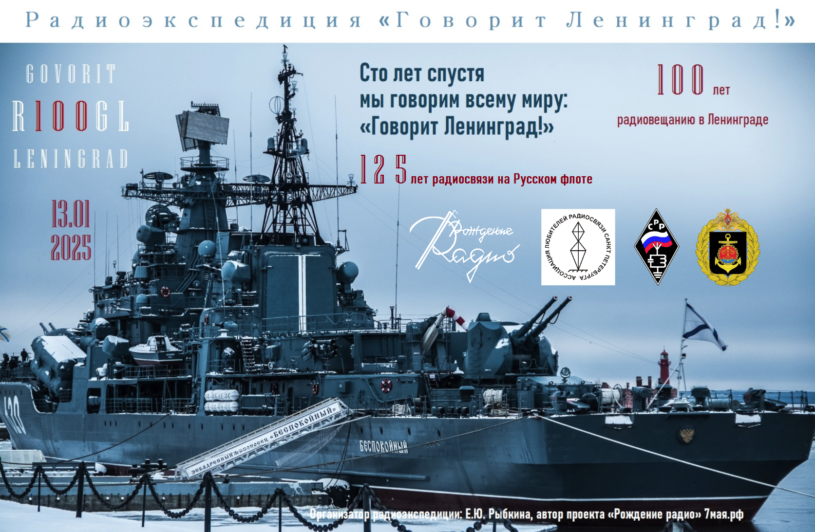 UA1C писал(а): R1BBT писал(а): Уважаемые коллеги, начиная с сегодняшнего дня и до 6 февраля 2025 года, мемориальный позывной R100GL прозвучит в эфире по всей России и не только, а также с борта трёх судов: — военного корабля-музея эсминец «Беспокойный» в Кронштадте, — ледокола «Красин», пришвартованного в Санкт-Петербурге, — научно-исследовательского судна «Витязь», стоящего в порту Калининграда