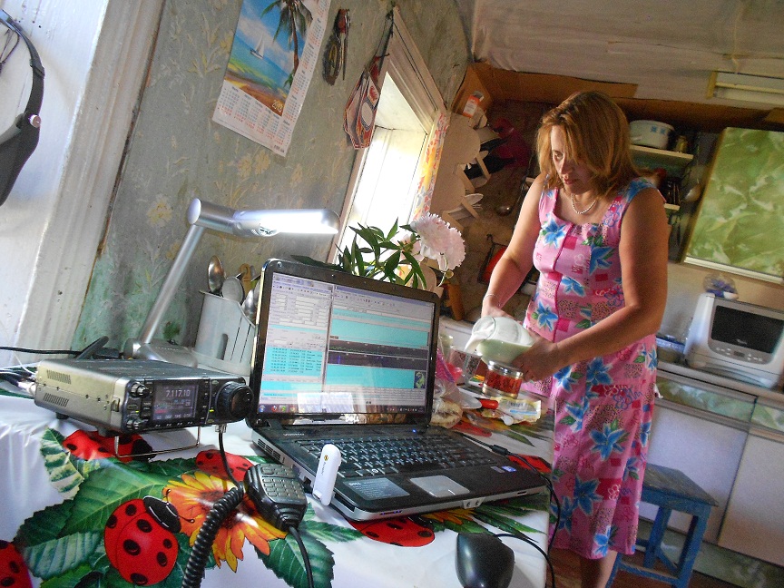 Тихо, в трудах праведных отметил с Геннадием UA1AKD свой 50-летний юбилей первого сигнала опознавания UA1FFM ... Заехал он за мной по пути из Питера, когда пробирался на свою дачу, на мою Малую Родину, что в 50км на р.Паша к СВ от Тихвина и в трудовых подвигах отметили мы памятную дату. Переночевали у него в дачном домике и с утра в субботу до полудня подняли около 3 кб плотного суглинка под 4 закладных для растяжек и одну опорную точку под 20м телескоп по центру участка. Ниже одного штыка лопаты пришлось долбить грунт ломом. Сплошная глина красная до 1м вглубь, а ниже пошла белая и затем крупнозернистый с галькой ПГС ... Закладная под телескоп установлена на заземляющий контур, выполненный по ПУЭ. Все обварено, забетонировано с металлической арматурой. Общий объем залитого цементного раствора с арматурой в 5 точек около 1,5кубометров ... В доказательство наших серьезных намерений по делам антенным для уважаемых форумчан, первой показываю фото супруги Геннадия, уважаемой Светланы ... Без ее помощи и руководства ничего бы у нас вольнодумцев непослшных не получилось бы. Весь день она угощала нас ТОЛЬКО охлажденным свежим козьим очень жирным молоком, холодным чаем без сахара , как мы и заказывали и холодным кофе, но уже с сахаром ... на улице было +35 и никакого ветра. Верьте друзья, ничего спиртного не было и в помине на такой жаре ... а вечером банька по черному с ... дубовым и пихтовим вениками и купание без комаров в р.Паша ... в баньке был только свежий самодельный квас с добавкой молодого хмеля, что вьется по заборам на том берегу, что от бабульки с левого берега реки Паша ...