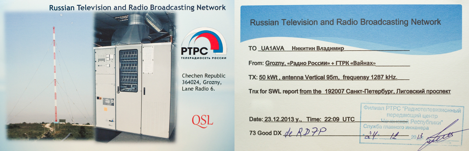 По почте, в конверте с марками, прислали красивую QSL от Радио России, г. Грозный