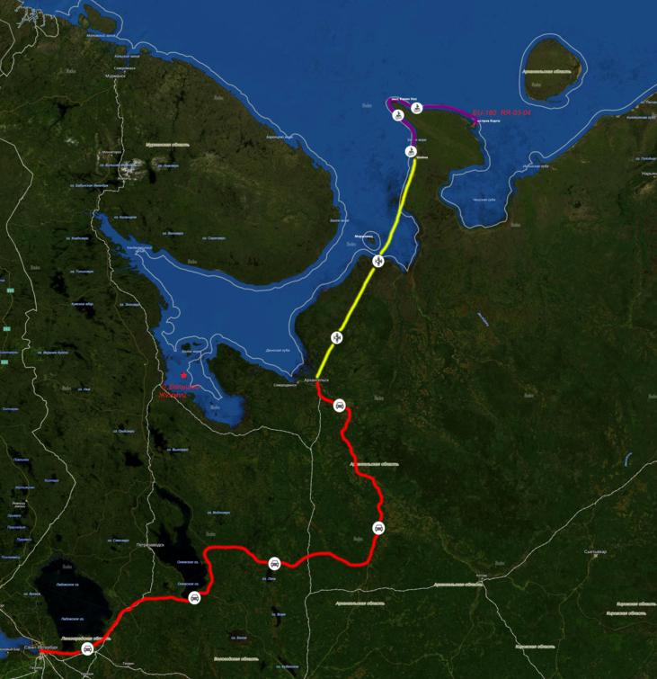 Вот такая предстоит экспедиция; маршрут- Петербург-Архангельск- Белое море- посёлок Шойна_-мыс Канин Нос - Баренцево море- остров Корга.-EU-160. RR-03-04