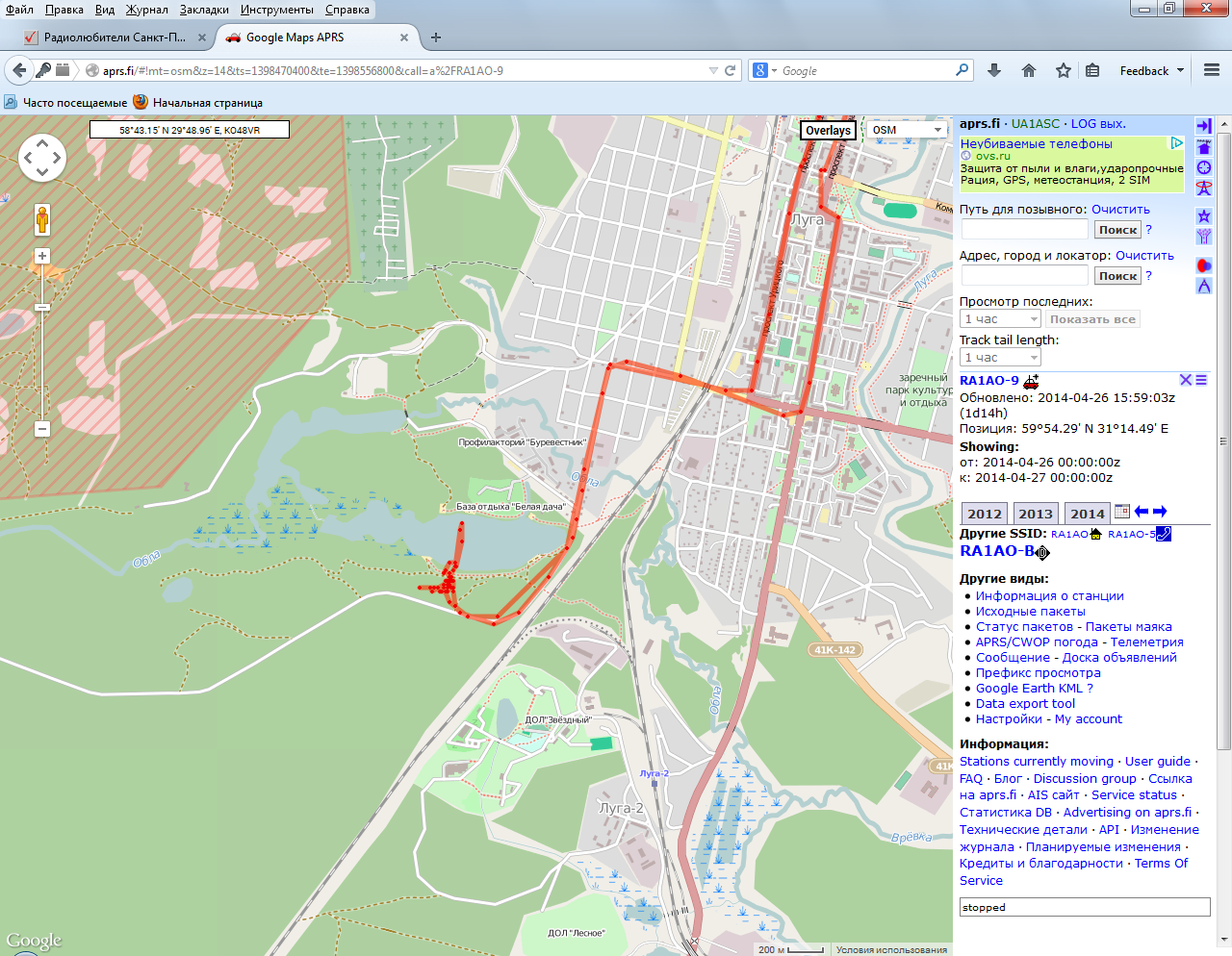 Итак. Место проведения ПД RP69LU расположено в живописной окраине г. Луга, на оз. Омчино. По данным местного населения ударение на последний слог. Легенда подъезда: Проезжаете через г.Луга, согласно маршрута. Внимание! В последнем участке маршрута на Нижегородской улице при проезде моста через р. Обла РАЗБИТАЯ ДОРОГА! Участок небольшой, но не советую влететь туда на скорости. Проезжать осторожно! Миновав оконечность озера дорога превратиться в грейдер. Первый съезд к озеру не пригоден для проезда! От оконечности озера вы едете по грейдеру, проезжая справа еще один заезд к озеру, который блокирован кучей грунта. Проехав чуть дальше (метров 300 от оконечности озера) за плавный поворот увидите справа еще один заезд. Он нам и нужен. Внимание, не проскочите его, он не слишком приметен. Мы его постараемся обозначить и будем на дежурной частоте 145.500 / 434.550 (60 LPD). Окончание маршрута по СитиГиду.Квадрат и координаты на скриншоте присутствуют. Так же указано расстояние маршрута и примерное время в пути от развязки КАД и Пулковского шоссе: Вложение: